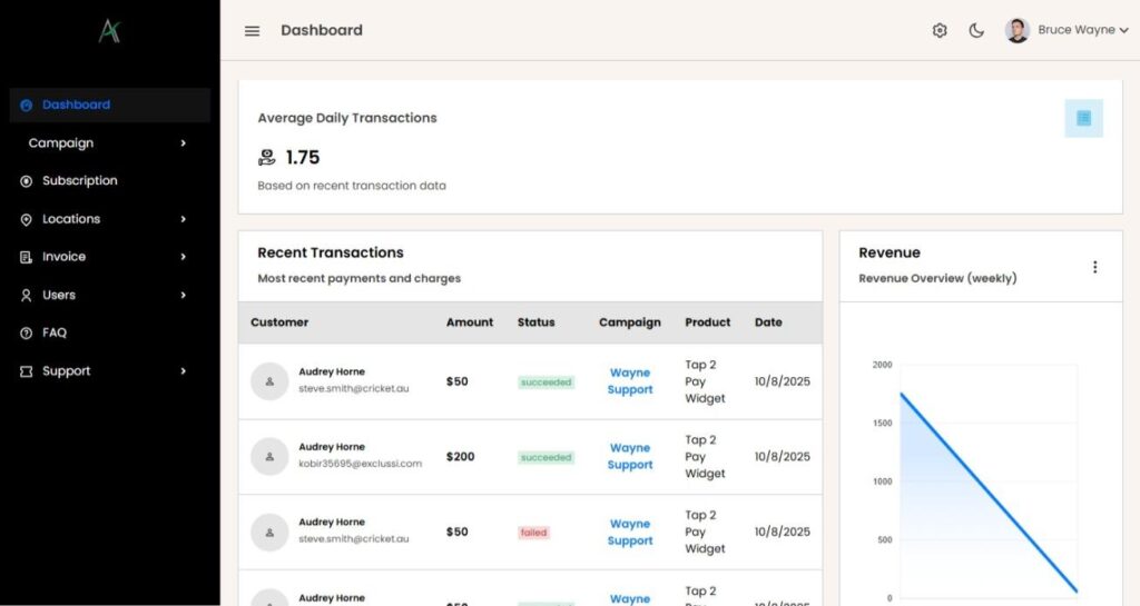 Manage all donations from one central hub. Track contributions by source (kiosk, website, campaign), analyze donor behavior, export reports, and make data-driven fundraising decisions.